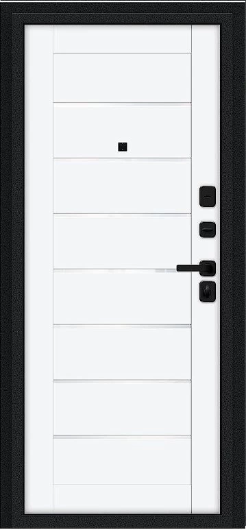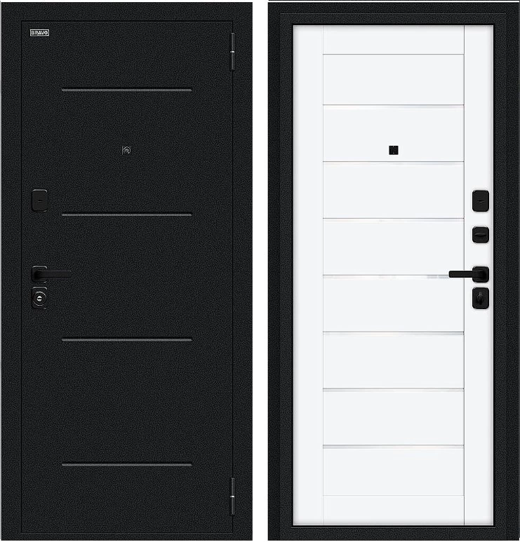 Надежная входная Дверь Браво Техно/SBlack Букле черное/White Silk премиум класса по цене 35 460 руб. Большая толщина стали защитит от проникновения в ваш дом, квартиру или коттедж. Используется очень качественная фурнитура: замки, цилиндры, ручки, защелки. Покрытие и отделка двери изготовлено под внимательным контролем производителя. Дверь имеет долгий срок службы и гарантию.